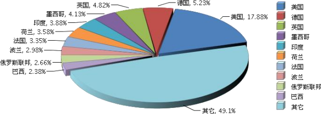 2023年1月~9月 ,浙江照明灯具行业完成累计出口额62.66亿美元 ,同比增长-7.06%。 比重主要集中在美国、德国、英国、墨西哥、印度等地区。其中 :美国完成累计出口额11.2亿美元(占17.88%) ,同比增长-17.96% ;德国完成累计出口额3 .28亿美元(占5 .23%) ,同比增长 - 32.26% ;英国完成累计出口额3.02亿美元(占4.82%) ,同比增长-17.25% ;墨西哥完成累计出口额2.59亿美元(占4.13%) ,同比增长13.34% ;印度完成累计出口额2.43亿美元(占3.88%) ,同比增长30.67%。